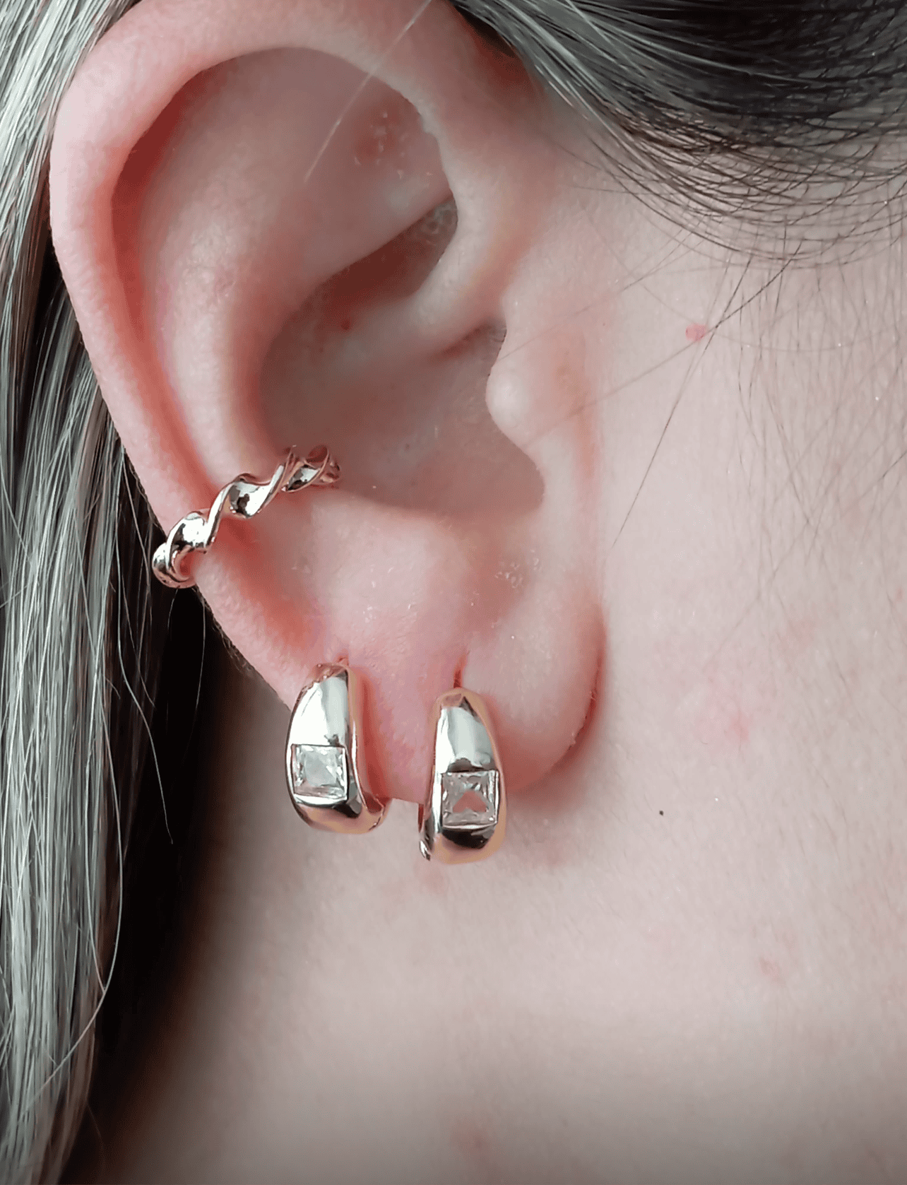 A woman can wear this earring as a standalone statement piece, allowing the solitary gem to catch the light and draw attention to her face. It's perfect for those who prefer minimalist elegance or for complementing a sophisticated, understated look. Alternatively, for a more curated and contemporary style, this earring can be paired with other earrings if she has multiple piercings. Mixing and matching with hoops, studs, or other light points can create a unique and personalized ear stack that reflects her individual style.