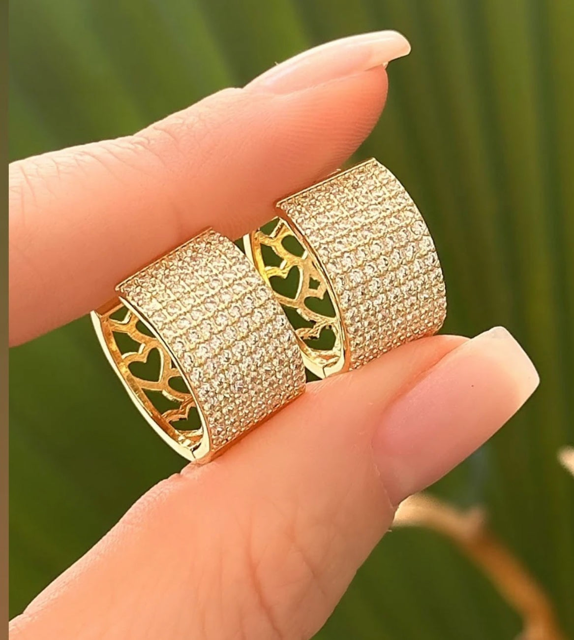 A stunning huggie earring adorned with zirconia, featuring a delicate heart detail on the back. This piece is perfect for a sophisticated woman who prides herself on always being impeccably dressed.