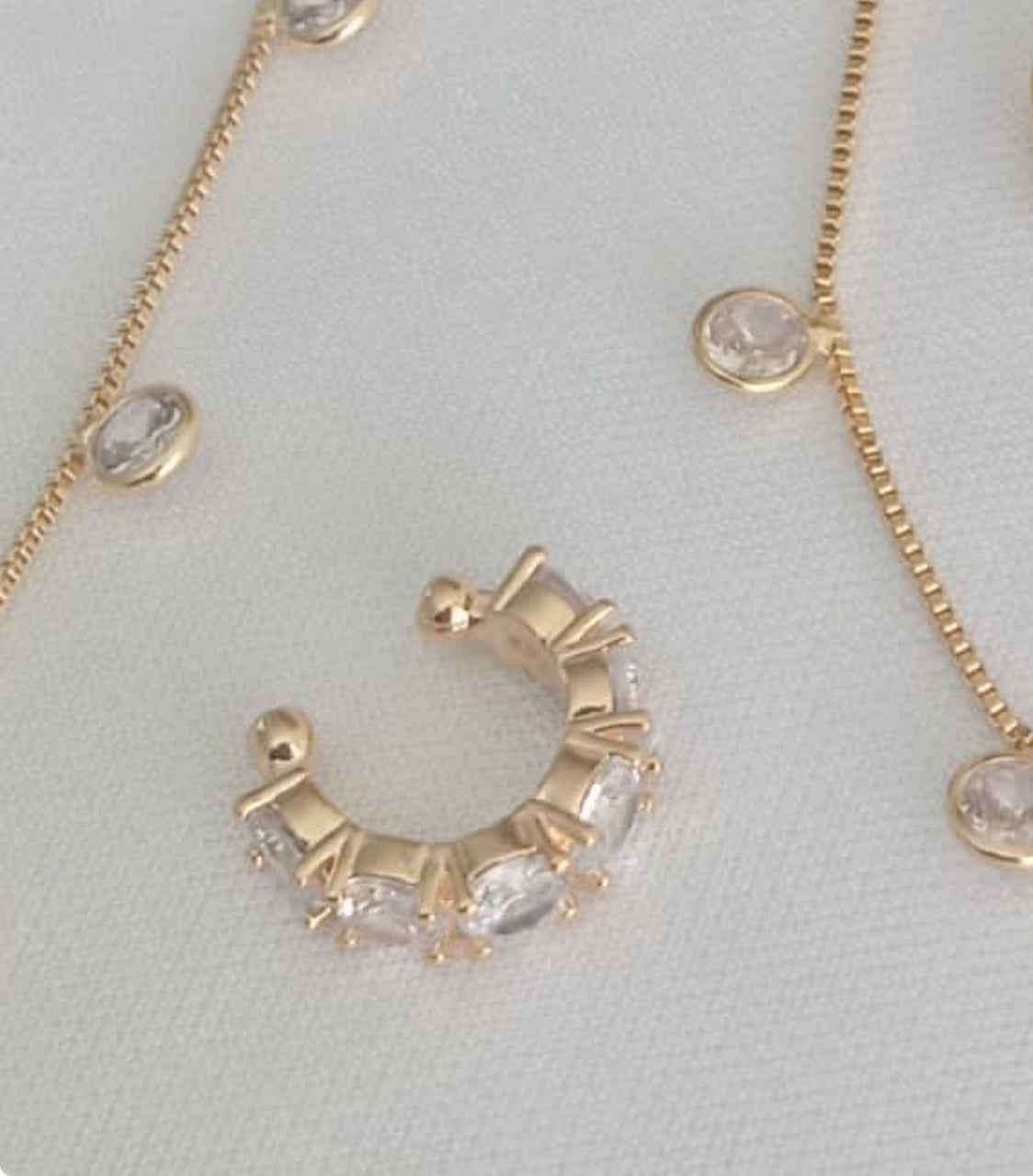 The Ear Cuff with 6 Stones is a beautifully crafted piece that combines modern elegance with a touch of whimsy. Featuring six meticulously chosen stones, this ear cuff is designed to catch the light and offer a spectrum of brilliance with every turn. Each stone, carefully set along the curve of the cuff, creates a seamless cascade of color and sparkle, making it an eye-catching addition to any ensemble.