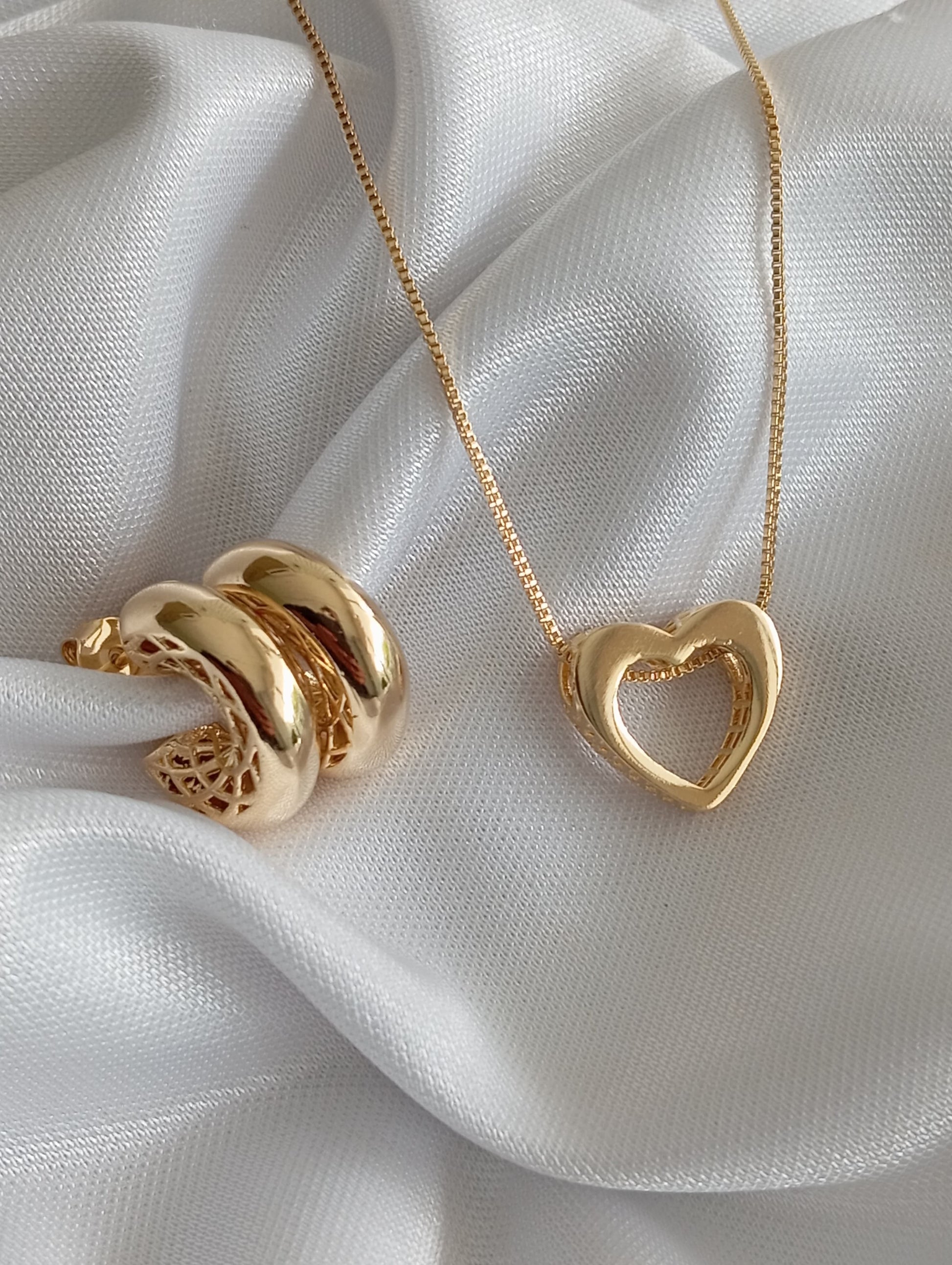 Heart Necklace with Lacy Sides 17.7 inches 11064