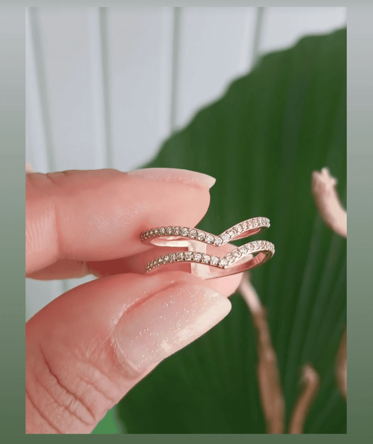 Double band V-shaped ring with pave setting 9850